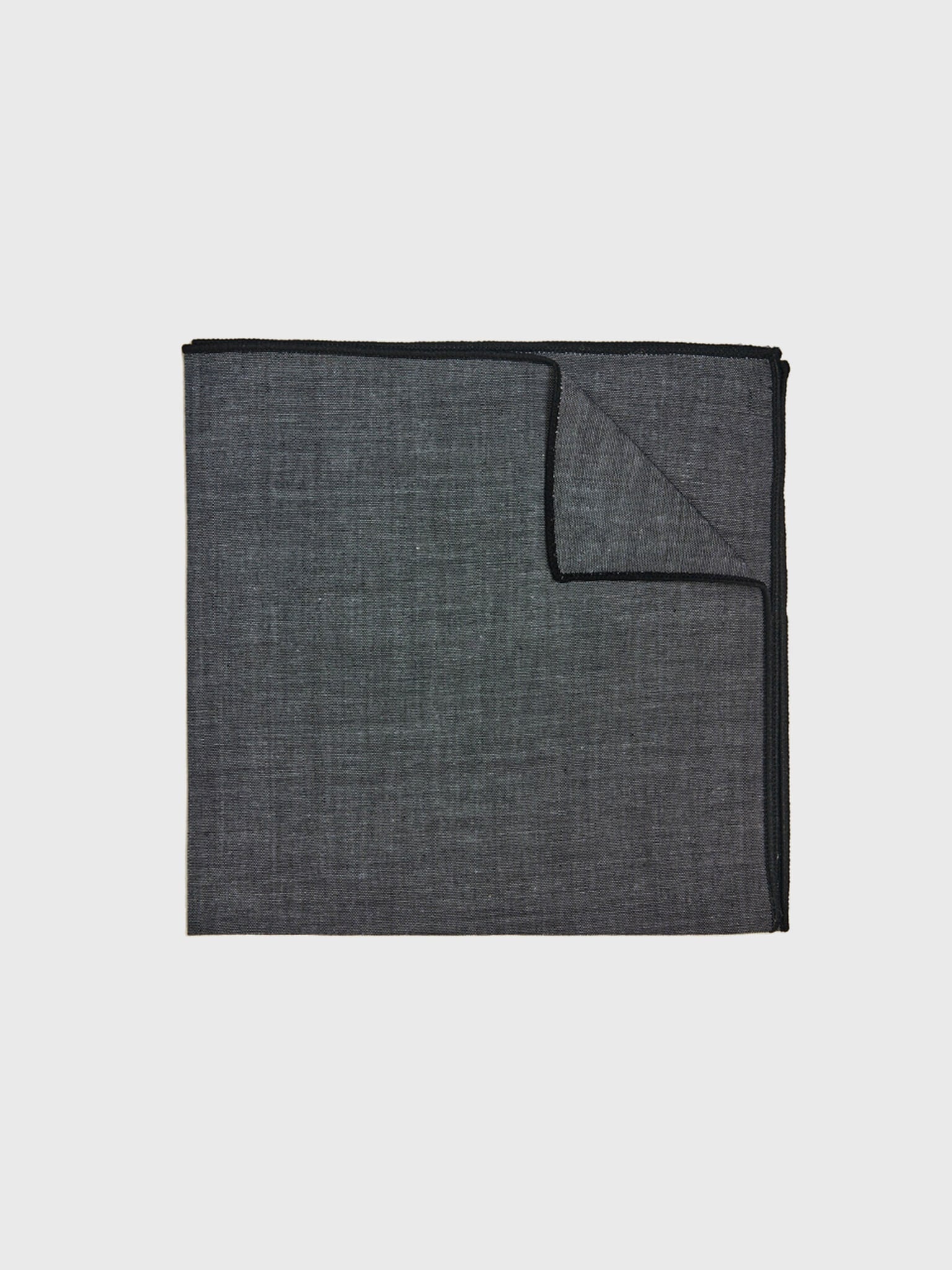 This refined chambray blend combines cotton comfort with lyocell's natural drape and sheen. The grey colorway with contrasting black border delivers a polished look that transitions effortlessly from workday to evening.