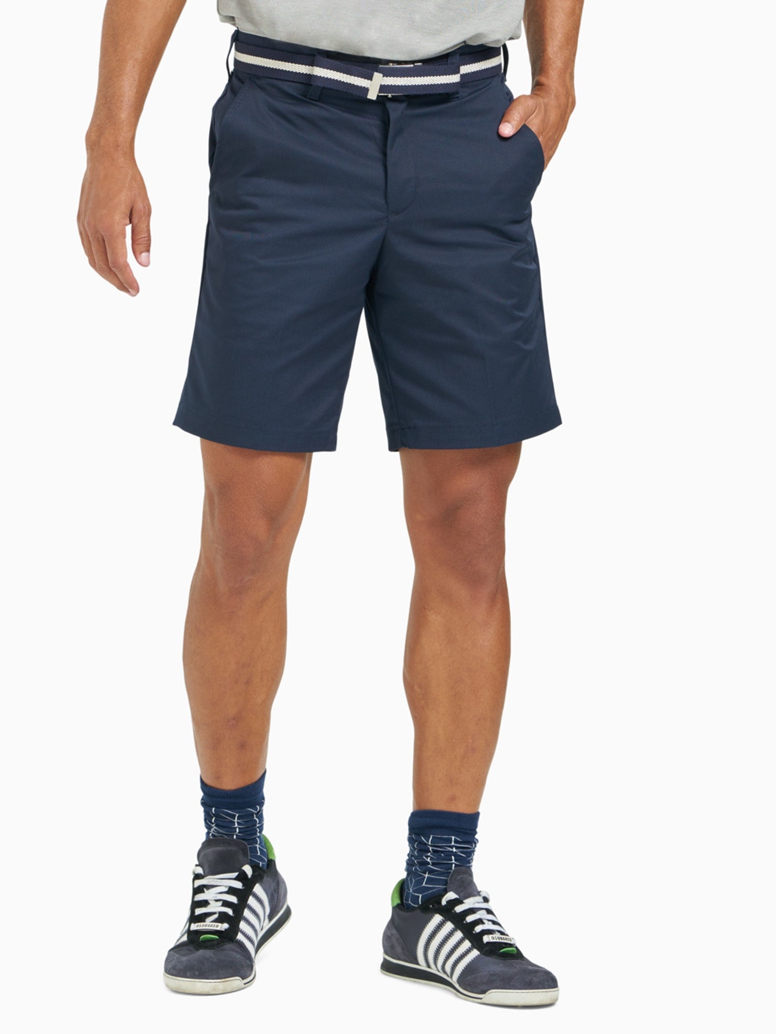These classic twill shorts combine durability with professional polish in a versatile mid-thigh length. The jean-style waistband and easy-care fabric make them a practical choice for everyday wear.