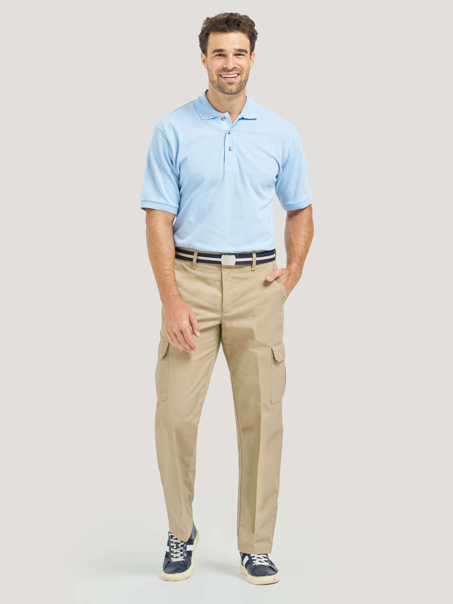 These hardworking cargo pants combine professional polish with practical utility features. The durable twill fabric with soil-release technology ensures lasting performance through repeated industrial laundering while maintaining a sharp appearance.