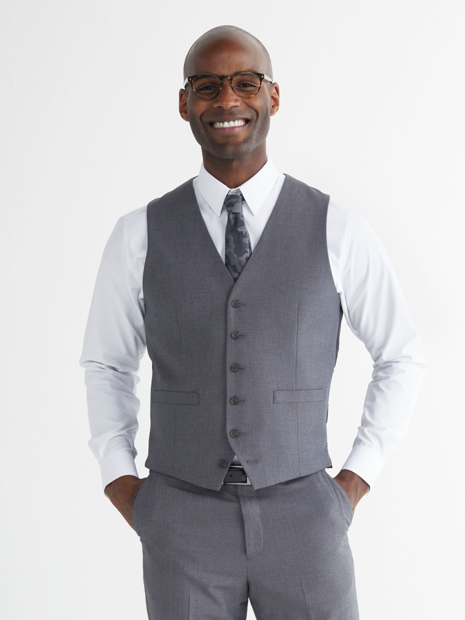 Paired with our James Blazer or on its own, complete your work-bound attire with the tailored James Vest. With classic button-styling, slanted pockets, and adjustable back belt, the James Vest is an understated suiting essential for a sharp look at the office.