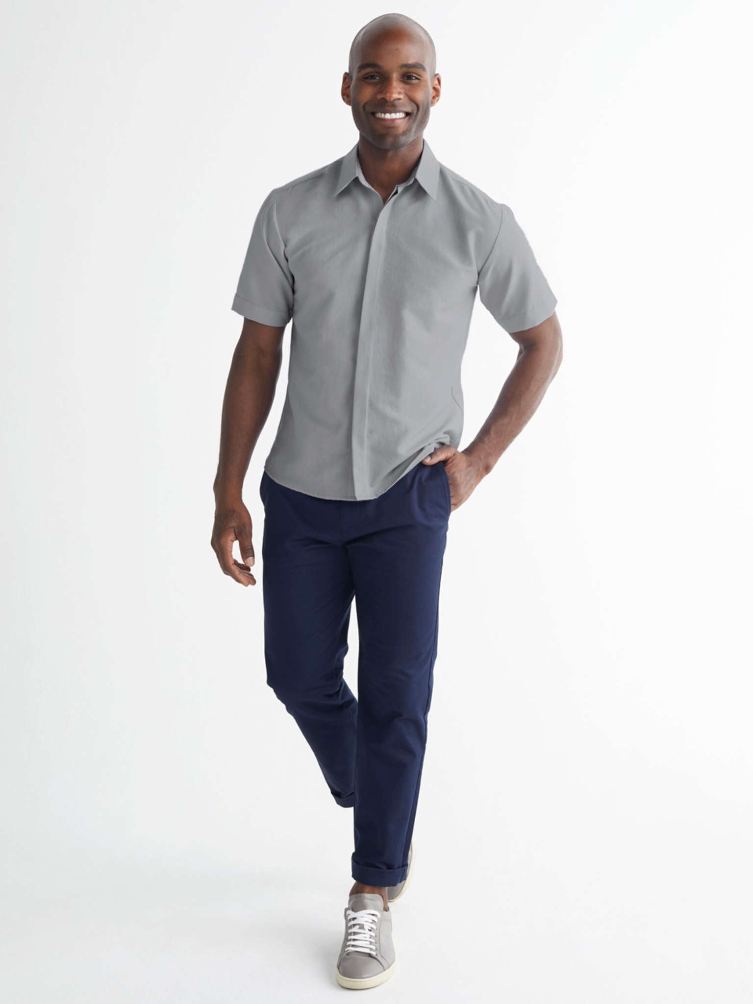 - Classic collared neckline for a polished look