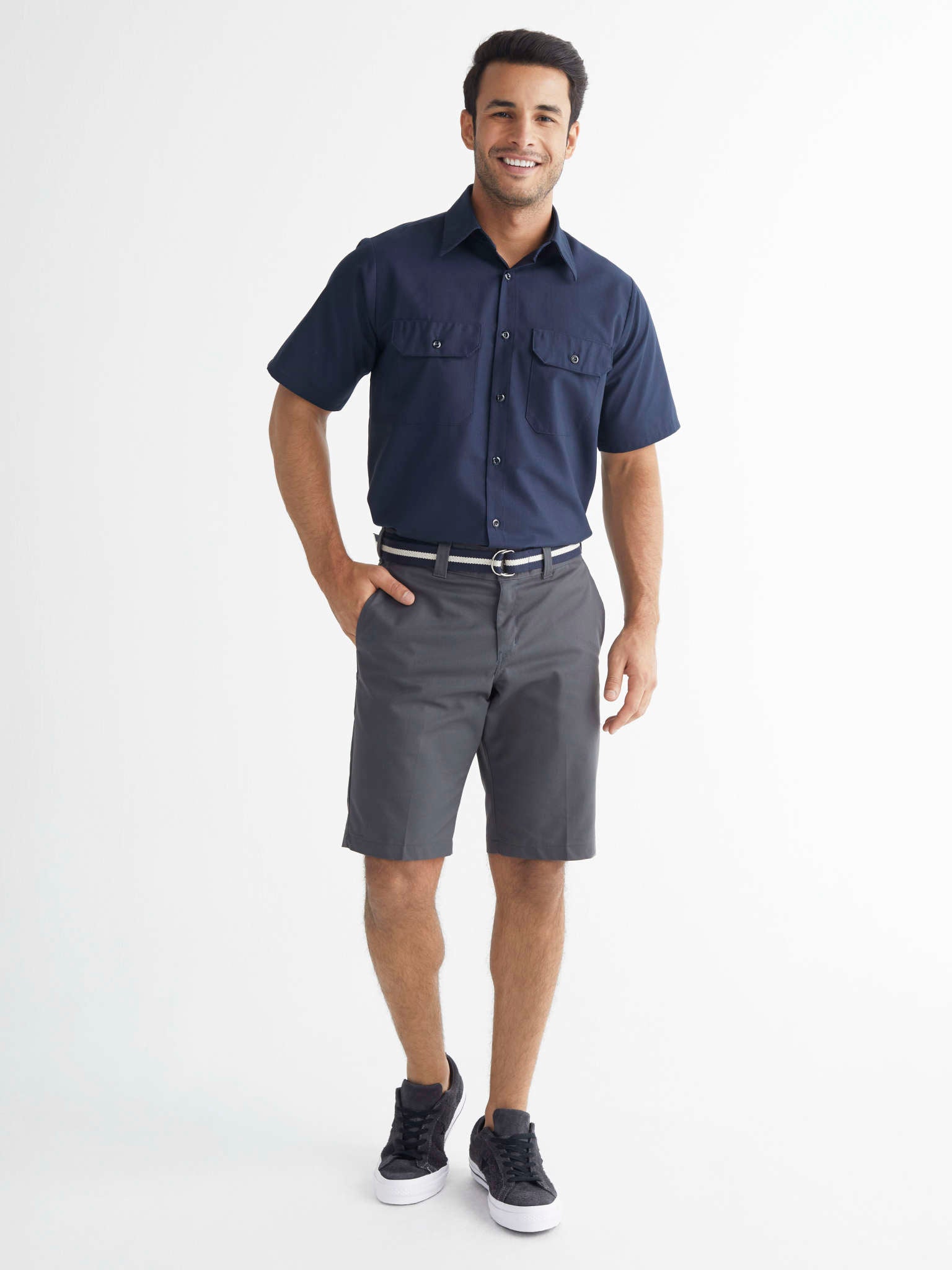 A classic professional button-front shirt crafted with precision details and quality construction. The durable poly-cotton blend and thoughtful features like sewn-in collar stays ensure this shirt maintains its crisp, professional appearance all day long.