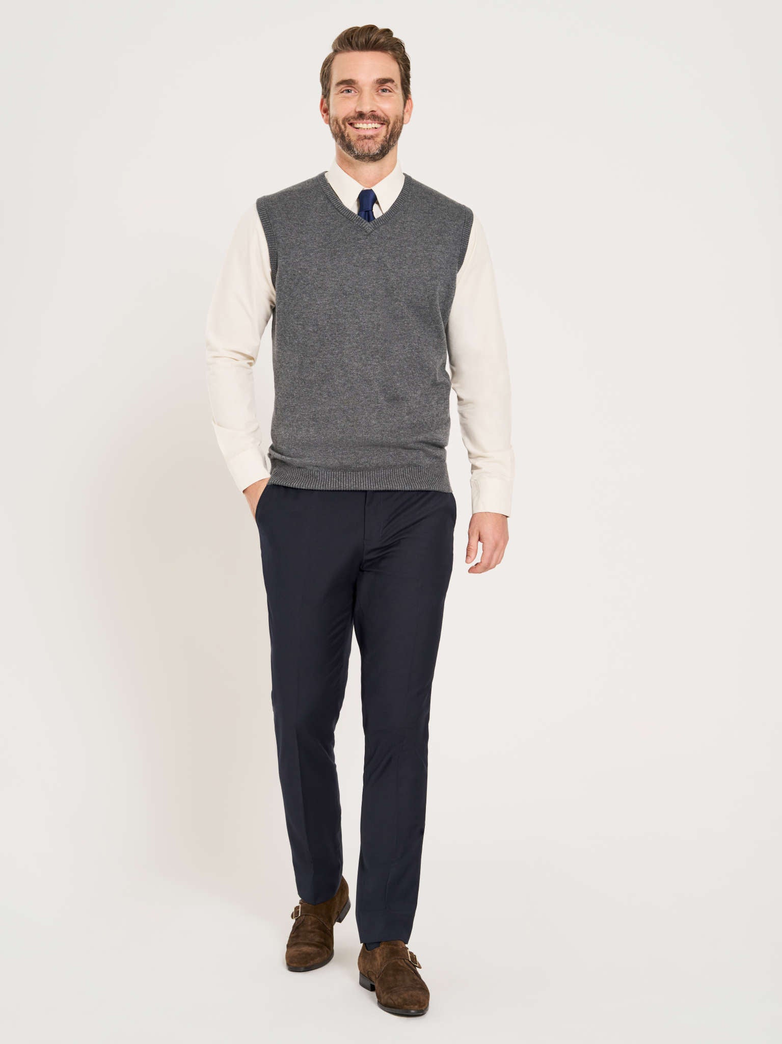This easy-care sweater vest delivers a refined layer of warmth and style for any work environment. Its soft, durable knit and machine-washable convenience make it a smart, low-maintenance choice for busy professionals.
