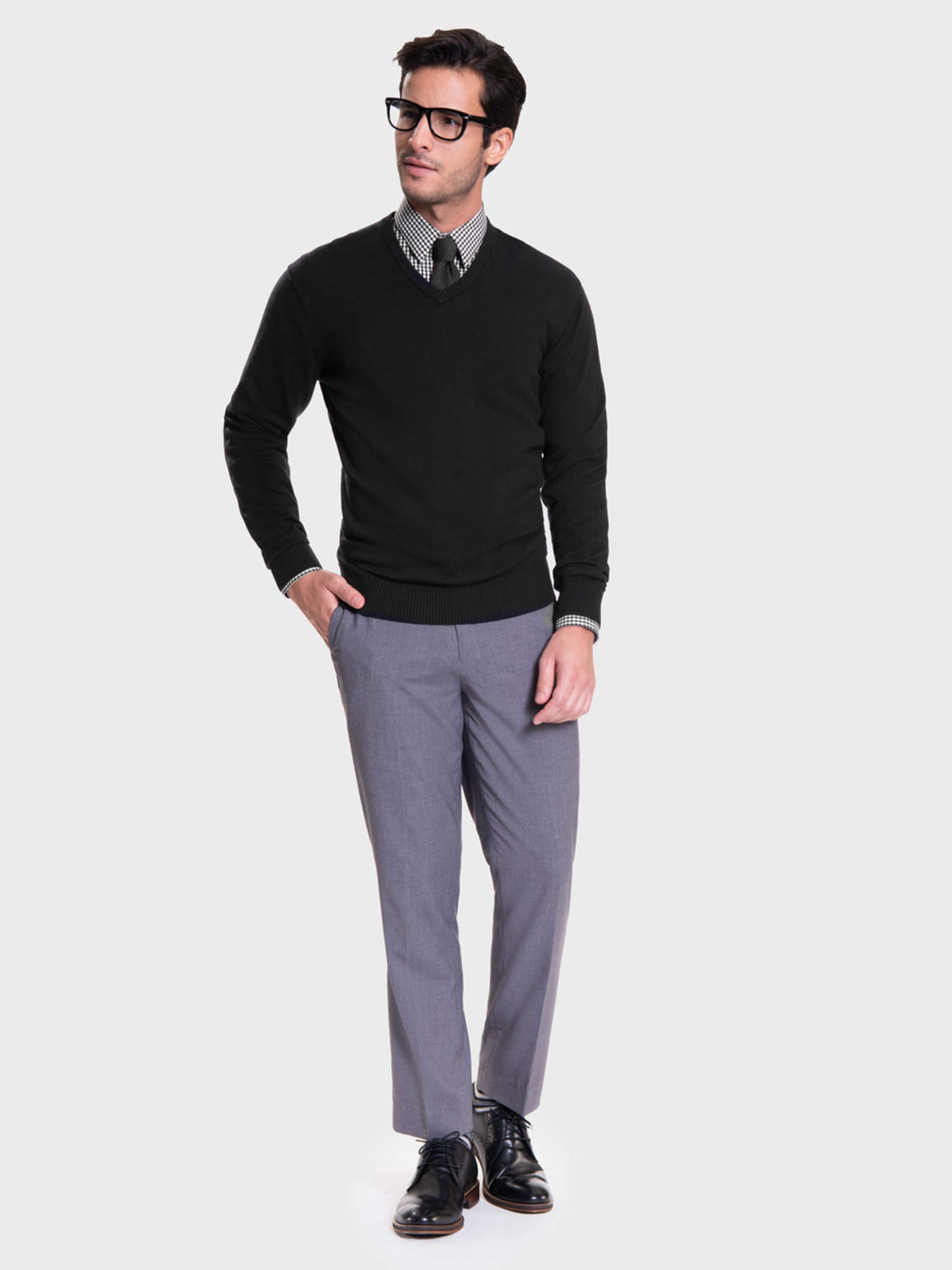 This V-neck sweater delivers a professional look with the comfort of a soft tri-blend knit. Its easy-care fabric and refined details make it a reliable choice for any work environment.