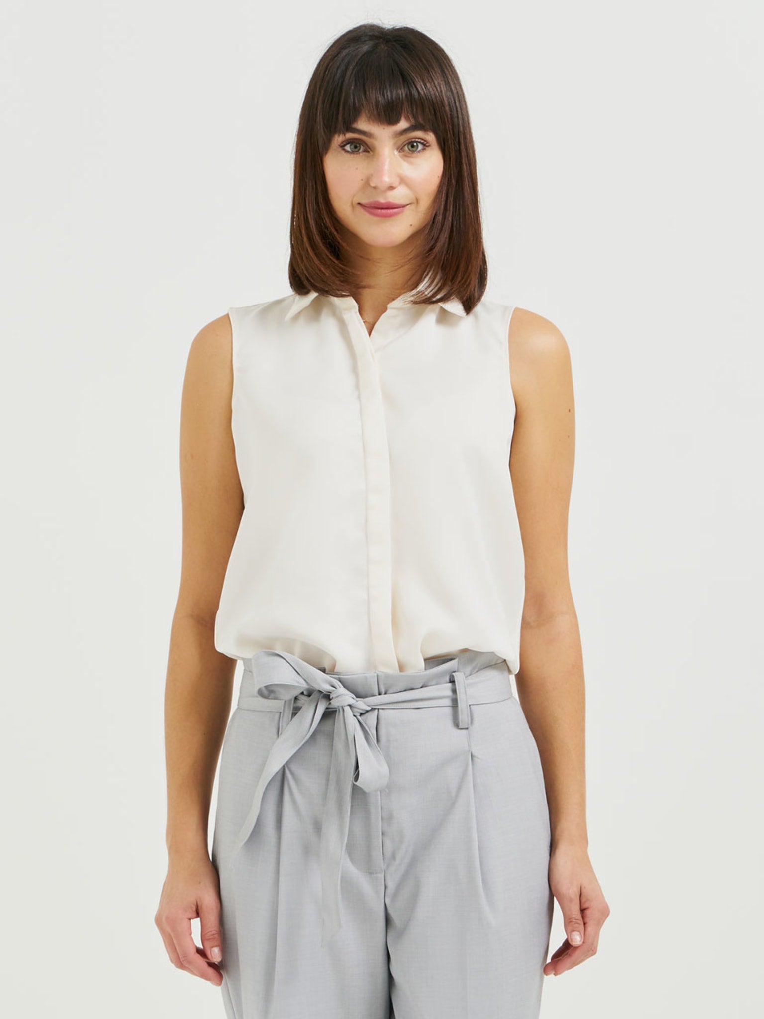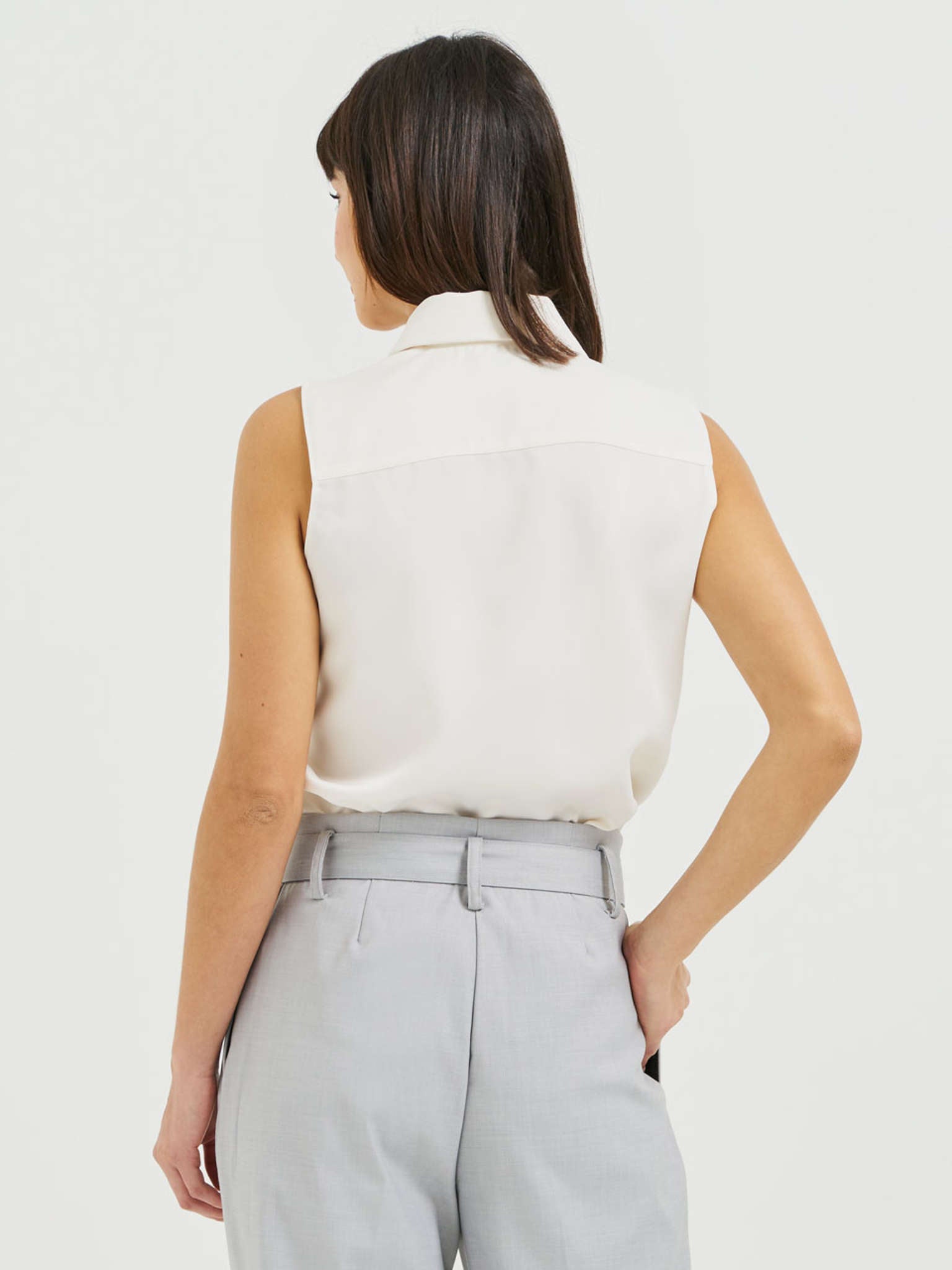 This sleeveless crepe blouse delivers effortless sophistication for any professional setting. Its lightweight, easy-care fabric and streamlined design make it a versatile staple for comfort and style.