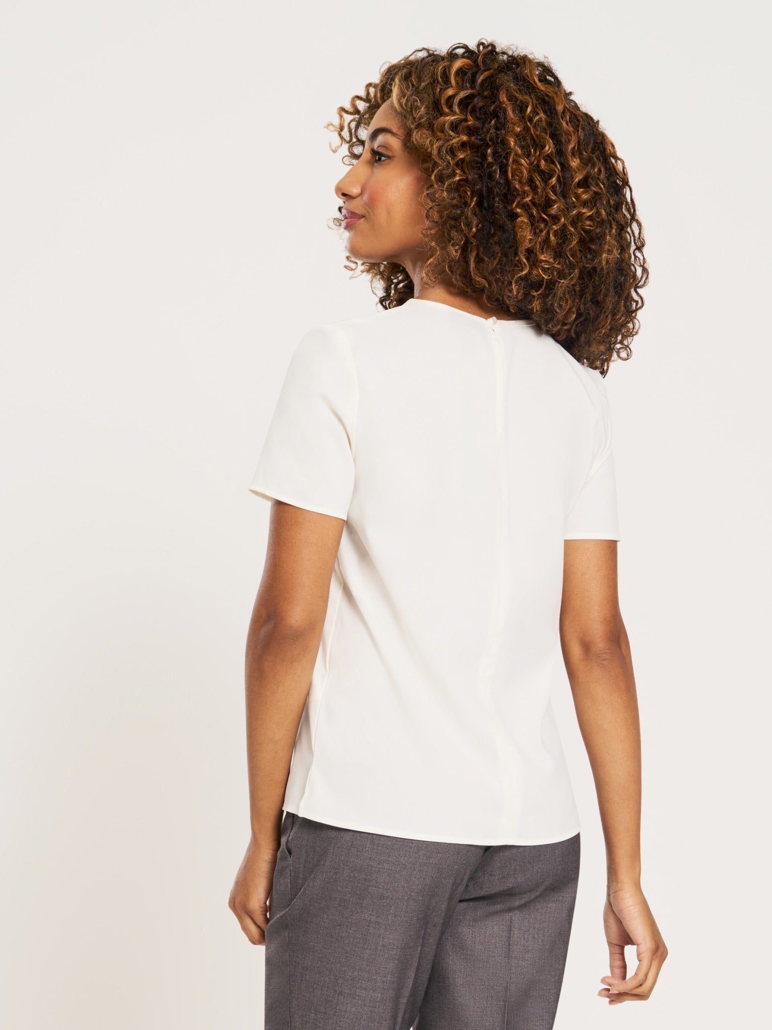 Easy breezy. This blouse is destined to become your favorite. With an elongating panel that cascades down the front, vertical lines and a roomy fit, it is the perfect complement to a blazer or cardigan.