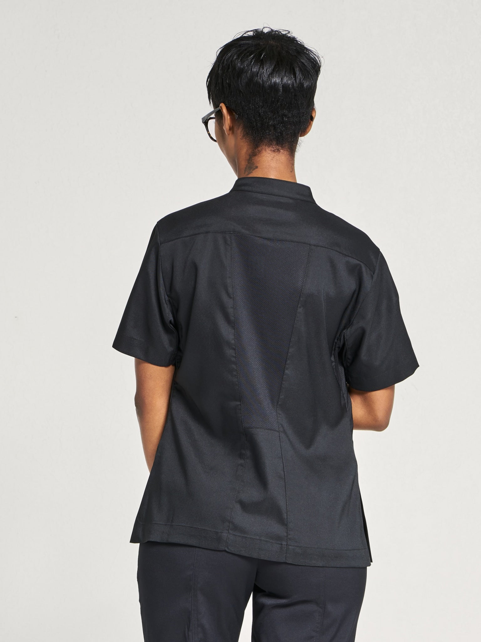A versatile performance uniform piece featuring strategic mesh ventilation and durable polyester-spandex construction. The thoughtful design combines practical storage with cooling comfort, making it an ideal choice for active professional wear.