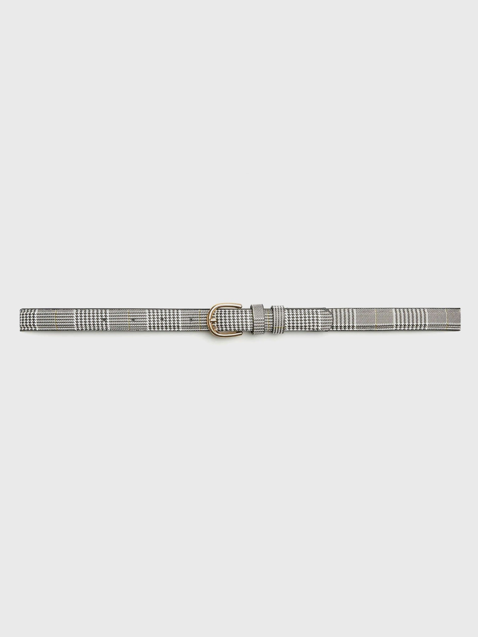 This refined skinny belt features premium genuine leather with an elegant glen plaid pattern. The 3.0 mm thickness provides lasting durability while maintaining a polished professional look.